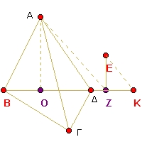 (δηλ. την σκιάν της ράβδου) και εύρωμεν 3 μέτρα, και την ΟΖ (δηλ. την σκιάν της πυραμίδος) και εύρωμεν 30 μέτρα, τότε ο λόγος μεταξύ αυτών θα είναι 10 μέτρα. Ο αυτός τότε λόγος θα υπάρχη μεταξύ της πλευράς ΕΖ (δηλ. της ράβδου) και ΑΟ (δηλ. του ύψους της πυραμίδος)· εάν λοιπόν η ράβδος έχη δύο μέτρα, το ύψος της πυραμίδος θα είναι 20.